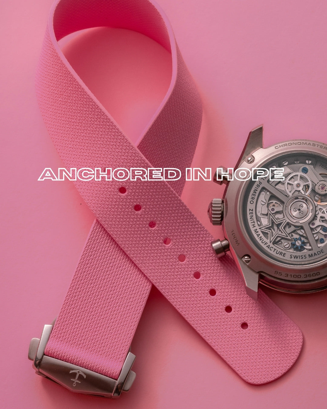 Now available in Ribbon Pink, a limited release colorway created exclusively for our Anchored in Hope campaign. All profits from this strap will be donated directly to breast cancer research through the American Cancer Society. By choosing Ribbon Pink, you’re not just elevating your watch—you’re joining the fight for a future without cancer.