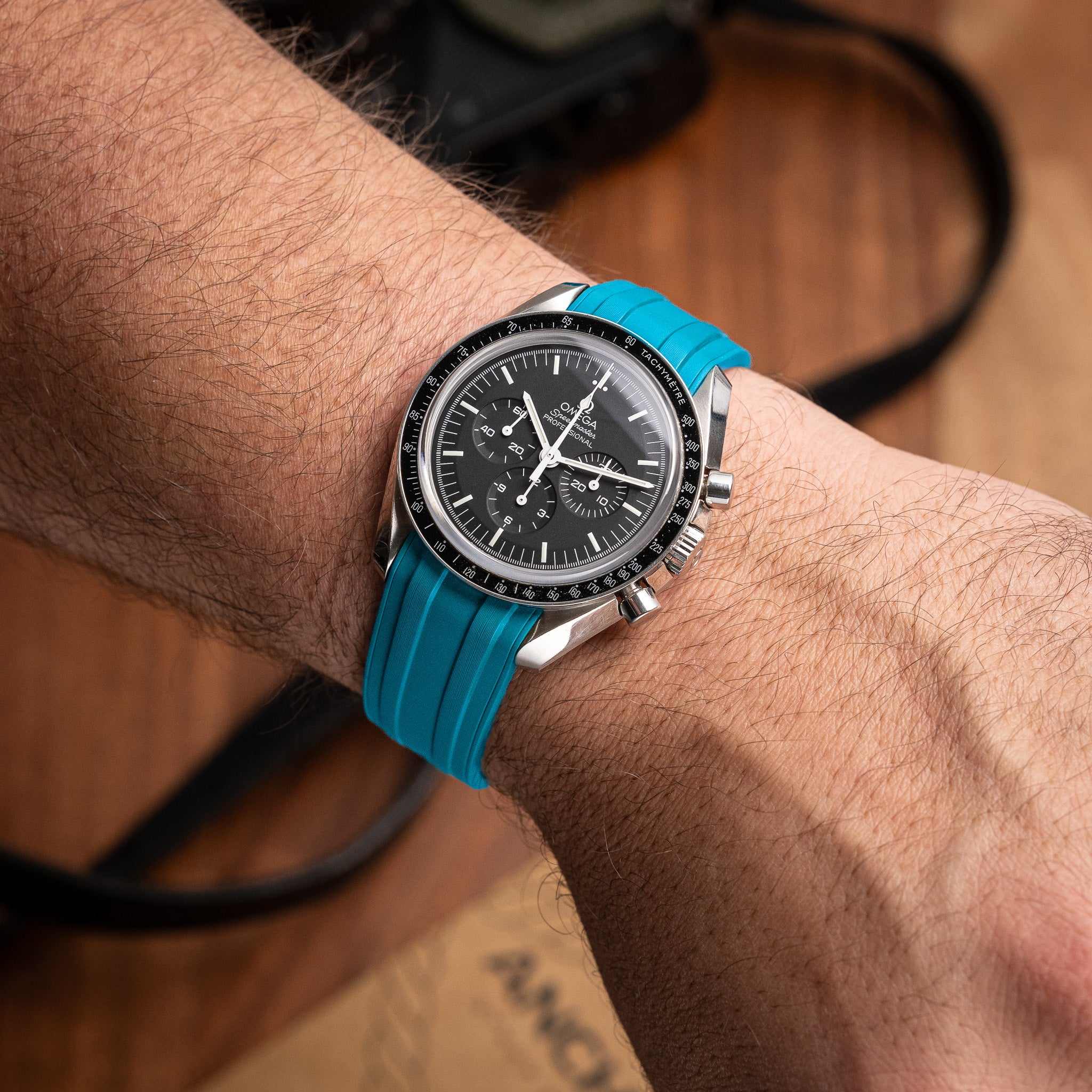 Upgrade your Omega Speedmaster Professional "Moonwatch" with a strap designed to match its heritage and elevate its comfort. Crafted from premium FKM rubber—a high-performance material prized for its durability and flexibility—this strap combines a modern deployant design with everyday wearability.