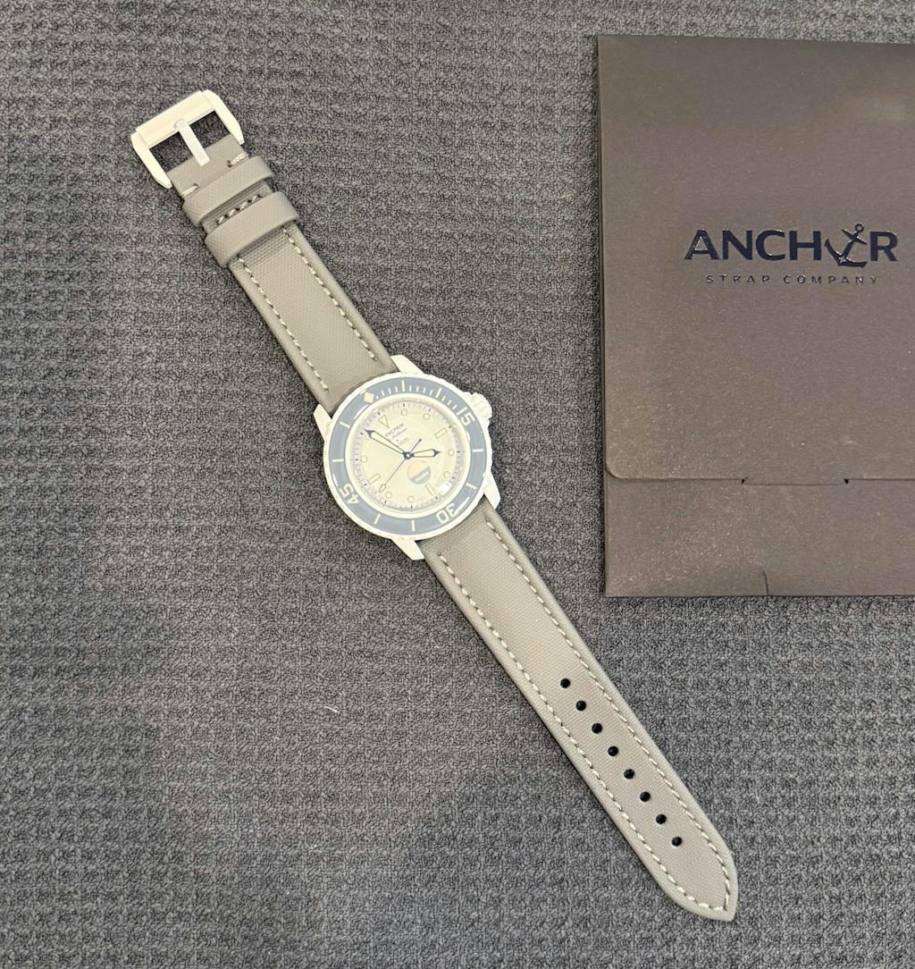 Constructed from durable marine-grade synthetic sailcloth and lined with supple caoutchouc rubber, this strap combines a tough exterior with an ultra-comfortable interior. The lightly textured finish offers a sophisticated look that pairs effortlessly with both modern and vintage tool watches.