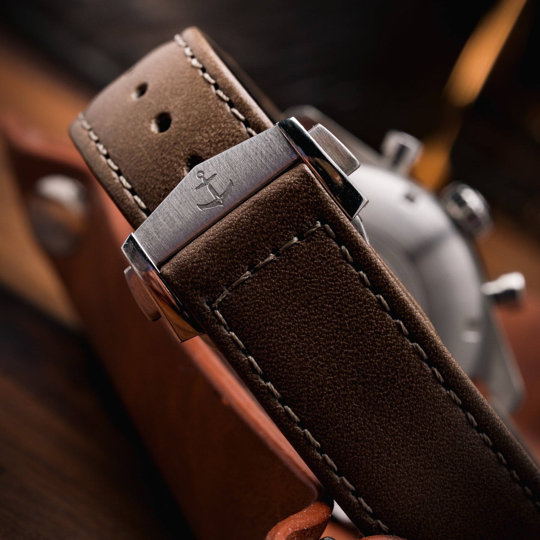 Deployant Italian Buttero Leather Strap - Storm Grey - Anchor Strap Co.