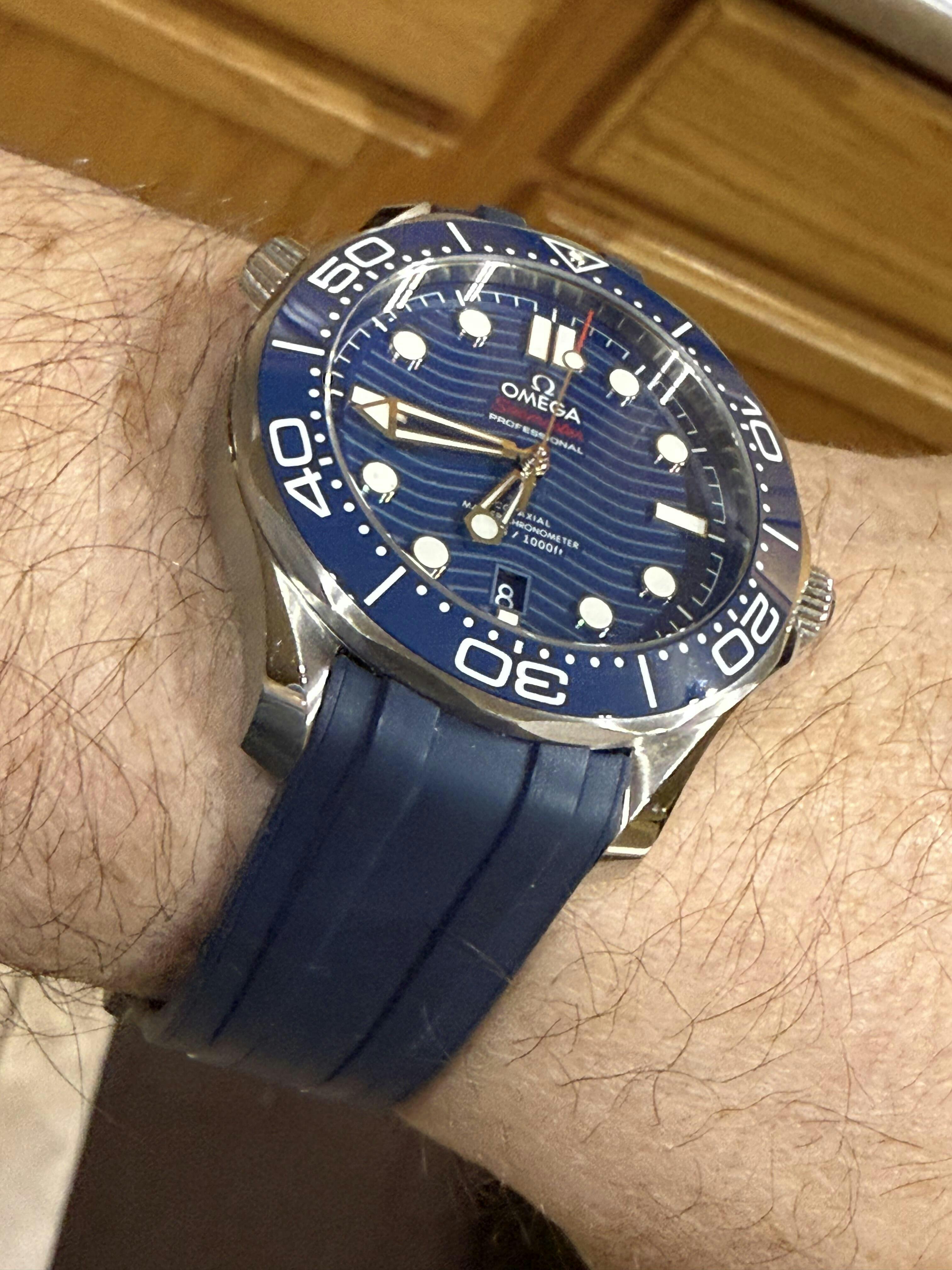 When designing an integrated deployant strap for the Seamaster, we set out to preserve the essence of Omega’s original aesthetic—echoing the striped regimental NATO pattern—while infusing it with the superior comfort, flexibility, and durability of our AnchorFlex FKM Rubber. The result: a strap that feels familiar yet performs far beyond the original.