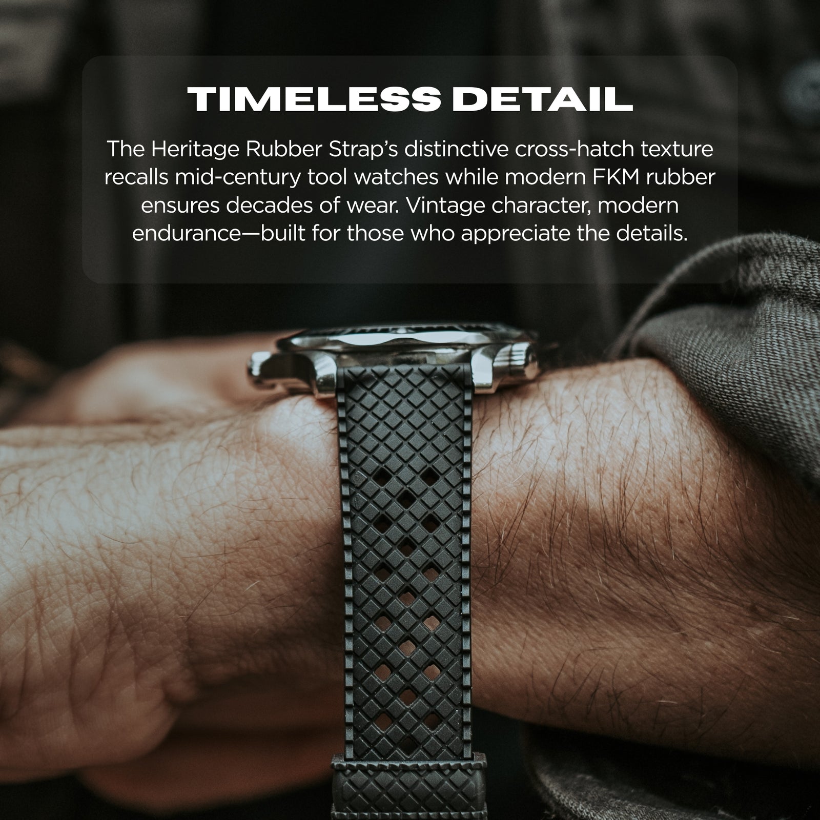 Heritage-Inspired Texture – Inspired by the earliest rubber straps of the 1960's, the crosshatch surface delivers vintage appeal with a modern twist.