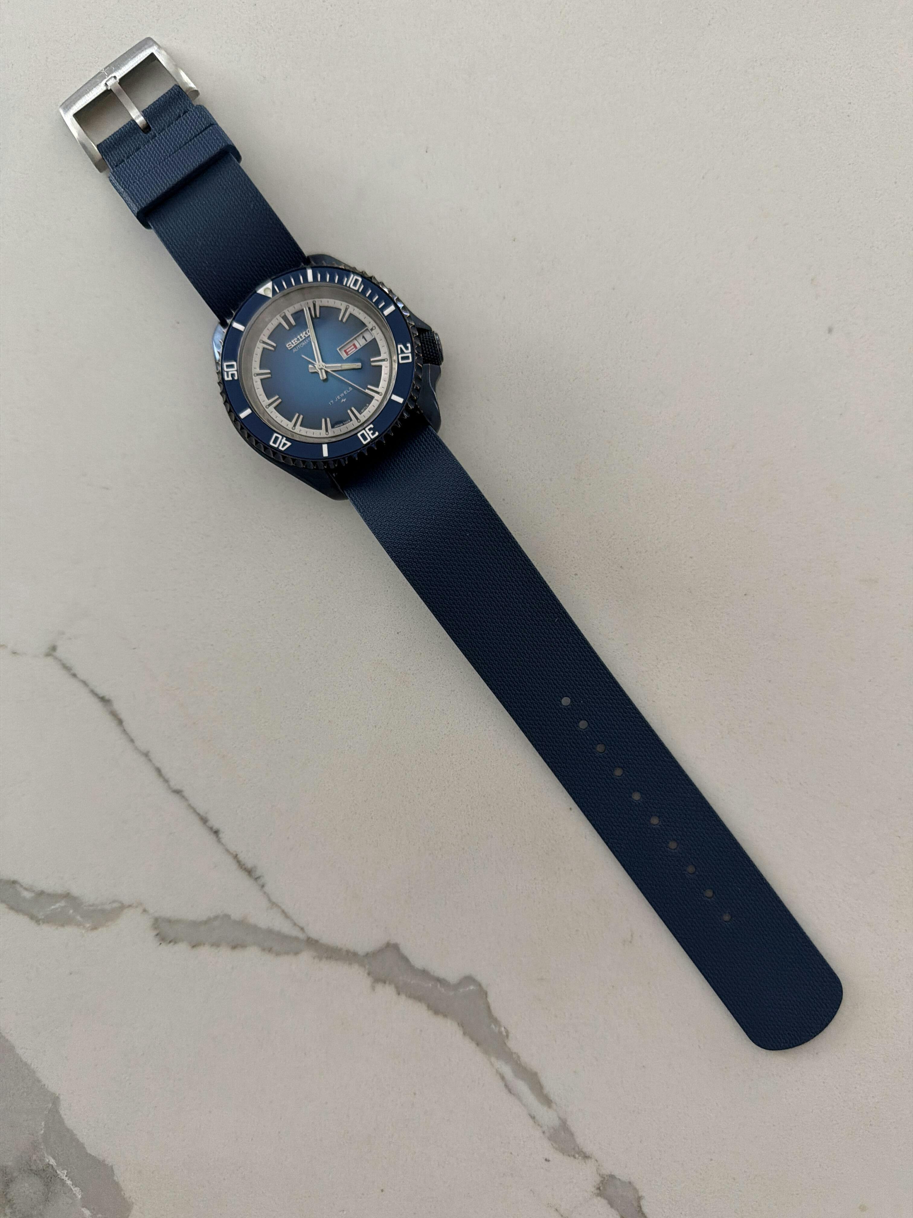Precision-molded from out premium fluoroelastomer rubber (FKM), AnchorFlex is soft on the wrist but tough against the elements—resisting heat, saltwater, UV rays, and chemicals. The subtly textured finish adds grip and visual depth, pairing perfectly with iconic dive tools like the CWC Royal Navy Diver.